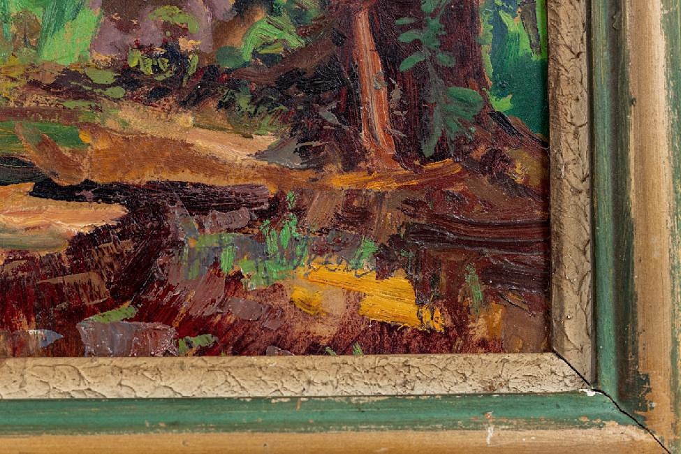 Olej na kartonu, rámováno, signováno vpravo dole, rozměr malby 66 x 81 cm a s rámem 85 x 100 cm, na rámu drobné oděrky a škrábance.