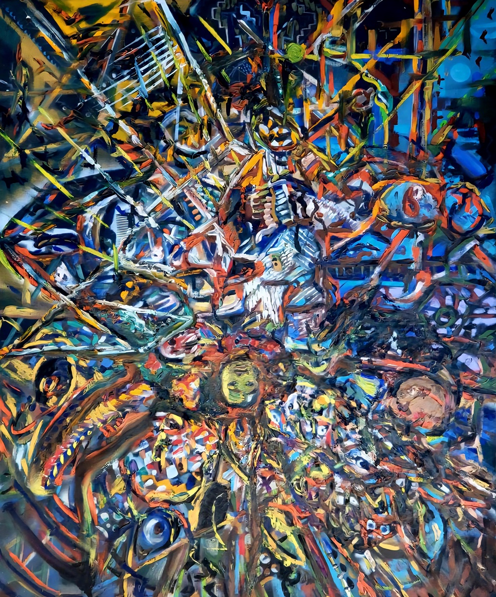 Obraz „Lod“ představuje metaforu cesty, transformace a objevování vnitřního světa. Velkoformátová kompozice vyniká svou energií a zároveň působí až hypnotickým dojmem, který diváka vtahuje do vlastního příběhu.