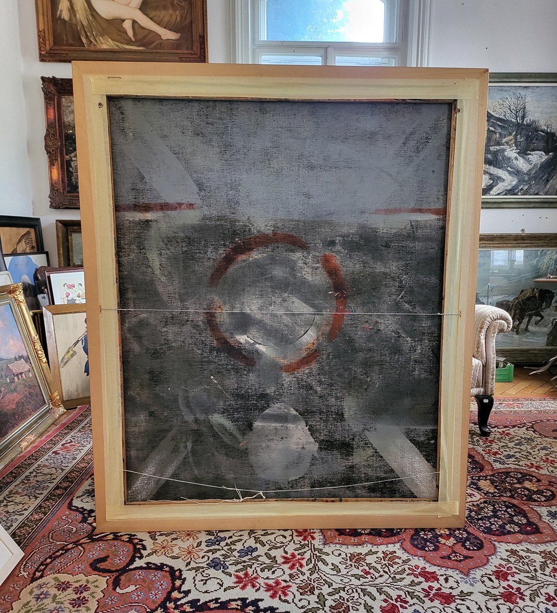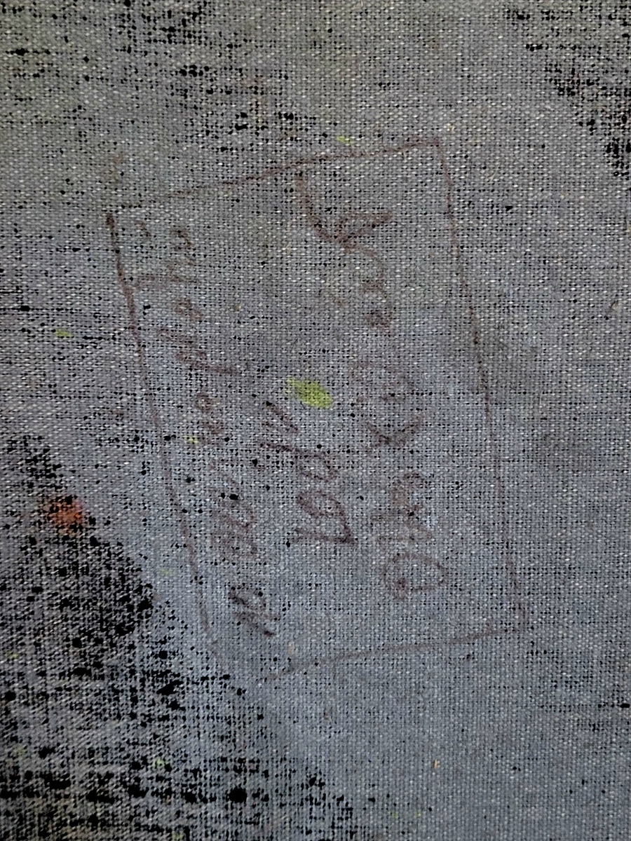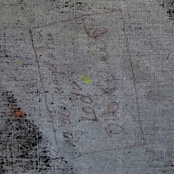 Olej na plátně, č. 10 na zadní straně, autorsky nazváno „Lod“.