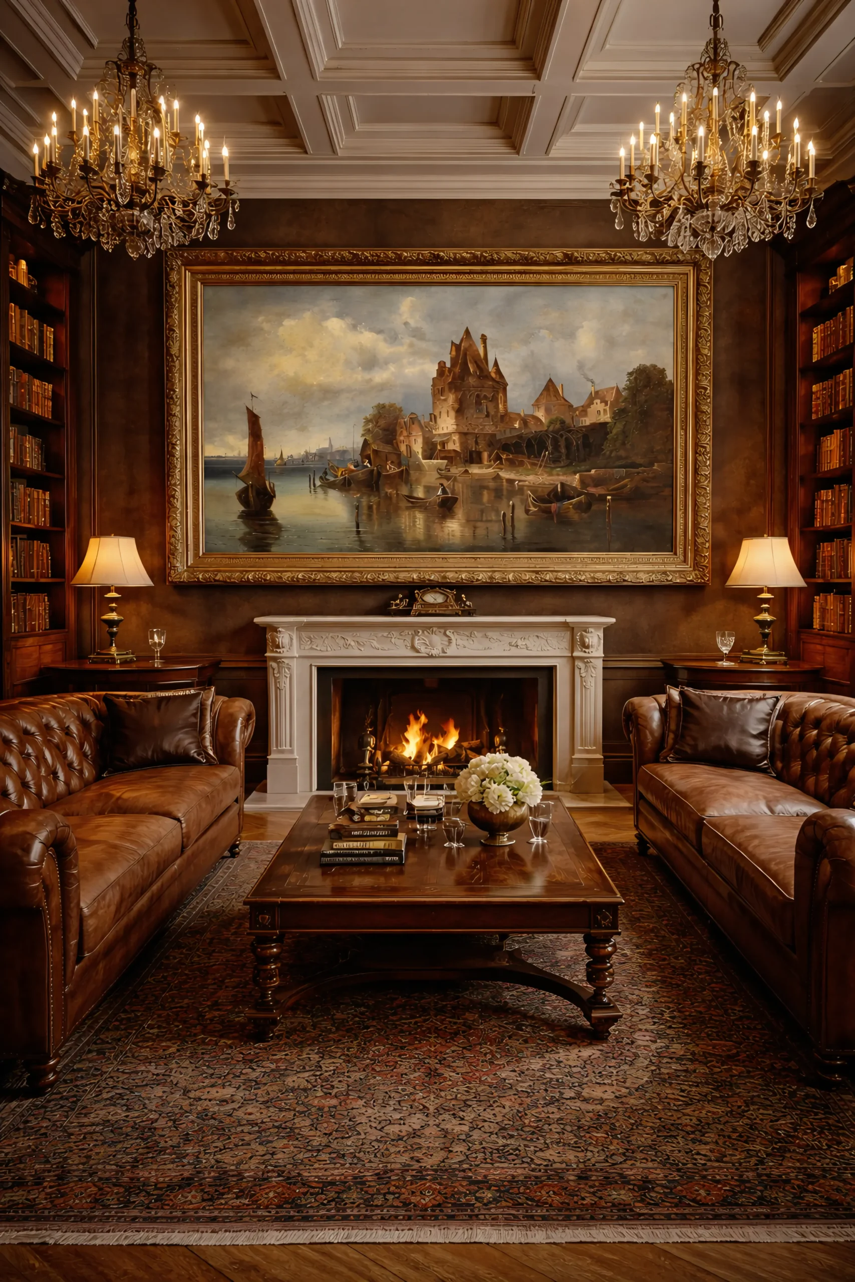 Tento monumentální obraz zachycuje živou atmosféru historického holandského přístavu s precizní architekturou, dramatickým nebem a malebnými postavami na loďkách. Malíř zde mistrně spojuje romantickou náladu s mimořádným smyslem pro detail, díky čemuž se jedná o skutečný sběratelský skvost. Obraz vyniká výjimečnými rozměry a výraznou dekorativností, díky čemuž se stává dominantou každého interiéru, ať už historické vily či moderní rezidence.